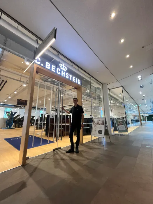 Here I am posing behind the counter at the Bechstein showroom in Berlin.