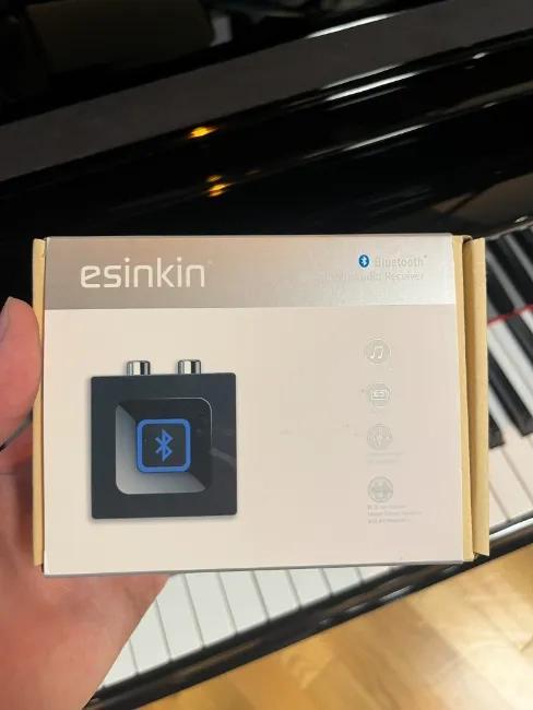 The Esinkin bluetooth adapter is plugged into a power source near/underneath the piano. This power strip was installed by me to increase the available power sources on the underside of the piano.