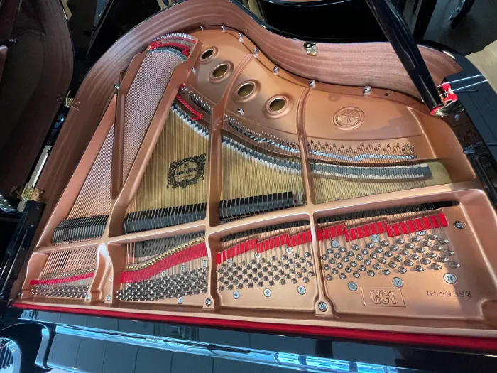 I've known Yamaha to produce pristine soundboards. Here is an example of the 9 ribs included which help support the soundboard to maintain consistent sound impedance across the soundboard.