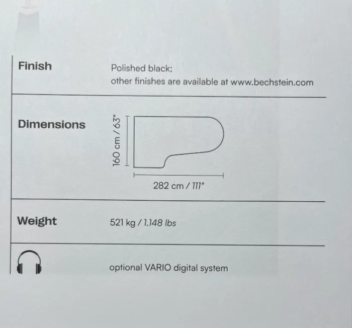 - Large Concert Grand: 1,148 lbs/520kg - (Bechstein D282)9 Feet 3 Inches Long