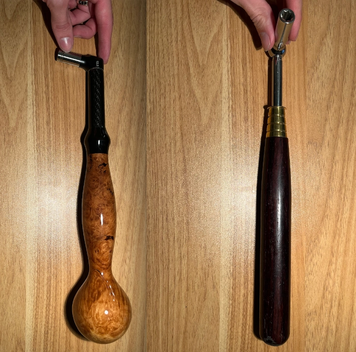The Rosewood lever is made up of a solid rod and a solid wooden handle. This makes for a much heavier lever, and gives it a starkly different 'feel' when tuning with this tool.